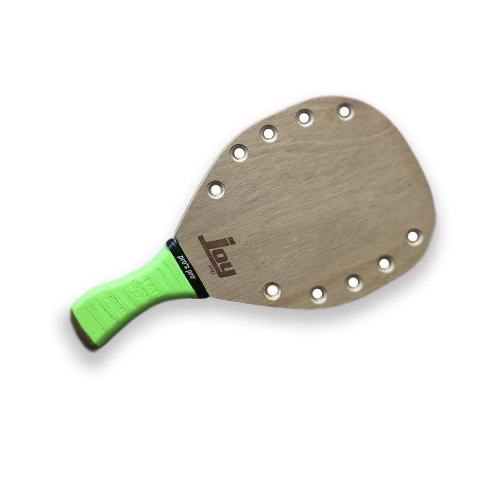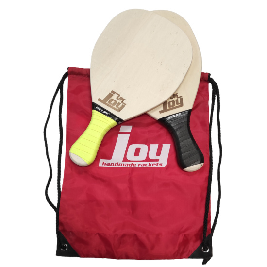 Οι ρακέτες JOY είναι κατασκευασμένες από κόντρα πλακέ θαλάσσης τεσσάρων χιλιοστών και από ξύλο λεύκας. Στο εσωτερικό μέρος της ρακέτας στο ξύλο λεύκας έχουμε δημιουργήσει κενά αέρος, ώστε να επιτυγχάνεται τόσο η απορρόφηση των κραδασμών από τα δυνατά χτυπήματα όσο και το σωστό ζύγισμα της ρακέτα. Όλα μας τα υλικά καθώς και οι κόλλες συγκόλλησης είναι κατάλληλες για την υγρασία, καθιστώντας ανθεκτικές τις ρακέτες μας ακόμα και στην επαφή τους με το νερό.